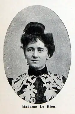 His wife, Madame Motann Le Blon, shared his passion for motoring, regularly accompanying him as riding mechanic in his races, and watching during his flying exploits.[4] Public statements in 1903 declared: "Madame Le Blon of Paris, has accompanied her husband on most of his record runs. [She] ... has entered her new Serpollet for the Nice races, in the coming spring, and hopes to travel at ninety miles per hour thereon."[5][6]