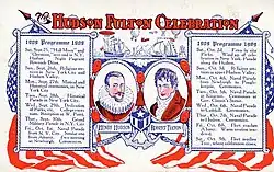 The Hudson–Fulton Celebration from September 25 to October 9, 1909 in New York and New Jersey was an elaborate commemoration of the 300th anniversary of Henry Hudson’s discovery of the Hudson River and the 100th anniversary of Robert Fulton's first successful commercial application of the paddle steamer.[1] The maritime achievements of Hudson and Fulton foreshadowed the importance of the river to New York's progress and identity. Organizers used the event not only to display the success of the two men, but also the status of New York City as a world city and the achievements of its citizens.[2]