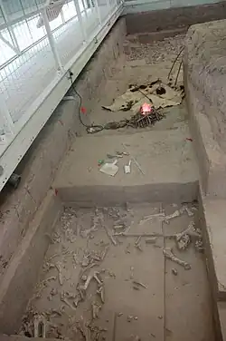 Bill Hudson and Albert Meng were local ranchers who are credited[4][5] with discovering the bonebed in 1954 while digging for a pond. Originally excavated by Dr. Larry Agenbroad in the 1970s, the dig was over 400 square meters and was considered the largest Alberta Culture bison kill site ever discovered. The bison found are not the same species as the bison that currently live in the United States (Bison bison), but are an animal transitional in evolution between the extinct Bison antiquus and the modern species.
