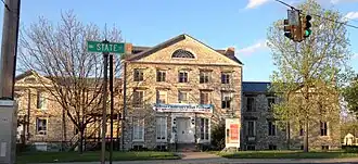 Hudson Almshouse, also known as the Hudson Lunatic Asylum, Hudson Orphan and Relief Association, and Hudson Area Association Library, is a historic almshouse located at Hudson, Columbia County, New York. It was built about 1818, with a substantial rear addition built between about 1884 and 1889. It consists of a three-story central section with two-story flanking wings constructed of dressed limestone. Originally built as an almshouse, it subsequently served as a mental health asylum, female academy, private home, and from 1959 to 2016, the local association library.[2][3]