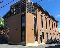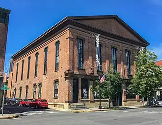 The building was designed by local architect Peter H. Avery[2] and was constructed in 1855 at 327 Warren Street. It was built as Hudson's first city hall, including a public space with a proposed 400 seats and space for 2,000 overall.