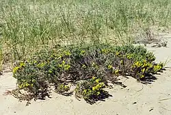 Hudsonia (goldenheather, poverty grass) is a small genus of three species of flowering plants in the family Cistaceae, native to North America. They are typical of sand dune habitats.