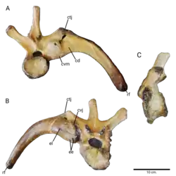 | Vertebra and a dorsal rib of H. tiquichensis (IGM 6253) with pathological conditions | |