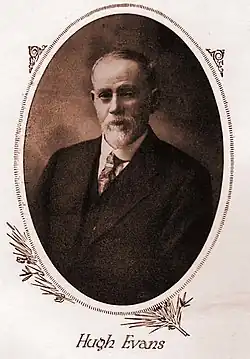Hugh Evans (14 September 1854 – 30 June 1934) was a Welsh publisher and author. He founded the Gwasg y Brython press and was the author of many books and articles about life in rural Wales and Welsh folklore, as well as a series of books for children.