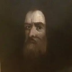 A portrait of Hugh O'Neill, part of a fresco, showing the head of a bearded man
