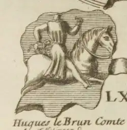 Hugh XI de Lusignan or Hugh VI of La Marche (c. 1221 – 6 April 1250) was a 13th-century French nobleman. He succeeded his mother Isabelle of Angoulême, former queen of England, as Count of Angoulême in 1246. He likewise succeeded his father Hugh X as Count of La Marche in 1249. Hugh XI was the half-brother of King Henry III of England.[1]
