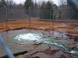 During the 1920s, a bore hole was drilled in order to remove water from multiple coal mines in the area. That hole was subsequently capped during the 1950s. This proved to be an unsatisfactory maintenance situation, however, because, over time, pressure gradually built up beneath the cap. By the 1970s, that pressure had increased to such an extent that it caused the cap to blow off of the bore hole, releasing an estimated water volume of 800 to 3,500 gallons per minute into the surrounding area,[1] along with an estimated daily amount of 8,000 pounds of dissolved metals.[2]