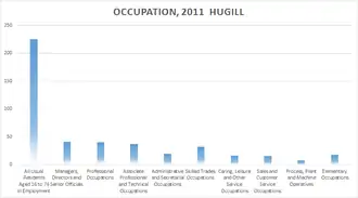 The main Occupation in Hugill are under the category of 'Managers, Directors and Senior Officials' having 47 people according to the 2011 census statistics. Contrasting this with the lowest category, being 'Process, Plant and Machine Operatives' only having 7 people.