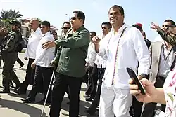 Under the new constitution, it was legally required that new elections be held in order to re-legitimize the government and president. This presidential election in July 2000 would be a part of a greater "megaelection", the first time in the country's history that the president, governors, national and regional congressmen, mayors and councilmen would be voted for on the same day.[122] Going into the elections, Chávez had control of all three branches of government.[115] For the position of president, Chávez's closest challenger proved to be his former friend and co-conspirator in the 1992 coup, Francisco Arias Cárdenas, who since becoming a governor of Zulia state had turned towards the political centre and begun to denounce Chávez as autocratic. Some of his supporters feared that he had alienated those in the middle class and the Roman Catholic Church hierarchy who had formerly supported him. Chávez was re-elected with 60% of the vote, a larger majority than his 1998 electoral victory.[123][124]
