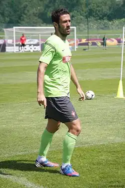 Viana then returned to the senior side, and scored his only international goal on 12 October 2005 to conclude a 3–0 home win over Latvia in 2006 FIFA World Cup qualification;[45] he appeared in two matches – both as a substitute – as the team came fourth at the finals in Germany.[46][47] He was called as a last-minute replacement for injured Carlos Martins to the Euro 2012 squad, with the team already in training camp;[48] he was unused in a run to the semi-finals but ended a five-year international exile in a pre-tournament friendly against Macedonia.[49]