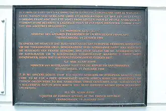 - In the Johannesburg Botanical Garden stands a memorial commemorating the 300th anniversary of the arrival of the Huguenots in South Africa.