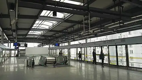 Huizhen Road (simplified Chinese: 汇臻路; traditional Chinese: 匯臻路; pinyin: Huìzhēn Lù) is a station on the Pujiang line of the Shanghai Metro. The station is located at the intersection of Lunan Road and Huizhen Road,[1] and serves as the southern terminus of the line. The preceding station is Dongchengyi Road. It began passenger operations with the rest of the Pujiang Line on March 31, 2018.[3]