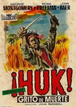 Huk! is a 1956 American adventure film directed by John Barnwell and written by Stirling Silliphant and filmed in the Philippines. The film stars George Montgomery, Mona Freeman, John Baer, James Bell, Teddy Benavides and Mario Barri. The film was released on August 9, 1956, by United Artists.[2][3] It is the first Philippine film of George Montgomery who would return to the islands in the 1960s to produce, direct, co-write and star in a number of Philippine films.