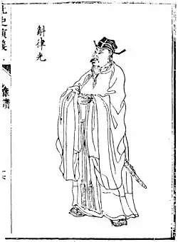 Hulü Guang (Chinese: 斛律光) (c. 515 – 22 August 572[1]), courtesy name Mingyue (明月), was an ethnic Tiele general of the Chinese Northern Qi dynasty. During the late years of the dynasty—the reigns of Emperor Wucheng and Gao Wei, traditionally viewed as a period of corruption and debauchery when the Northern Qi's once-powerful status was deteriorating—Hulü was viewed as the key pillar to the state and its army, maintaining the army's strength against the rivaling Northern Zhou and Chen dynasties. However, the powerful officials Zu Ting and Mu Tipo, had disagreements with him and accused him of plotting treason. In August 572, Gao Wei executed Hulü. The Emperor Wu of Northern Zhou was very glad about the news and declared a general pardon, and in 578, the Northern Qi fell to the Northern Zhou.