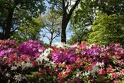 The colourful floral display in the Isabella Plantation, Richmond Park, London attracts many visitors.