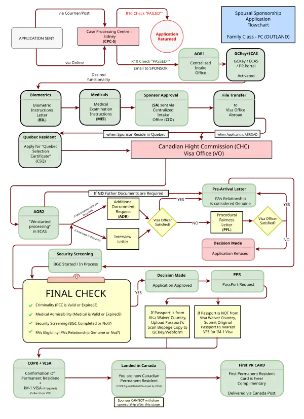 Unlike other Canadian provinces, Quebec has the autonomy to decide the number of permanent residents it accepts annually, including those selected for family reunification. This implies obtaining the Quebec Selection Certificate (CSQ) in addition to federal approval by Immigration, Refugees and Citizenship Canada (IRCC). This dual-layered processing has resulted in significant delays, particularly evidenced in the processing times for family reunification, which currently triple the average deadlines compared to the rest of Canada, exceeding 34 months.[15][13]