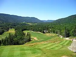 This resort includes chalets, holiday apartments and a spa.[1] Humber Valley golf resort is located in the hills of the Humber River Valley at elevations around 400 feet and overlooks Deer Lake and the Long Range Mountains. The club has facilities for weddings, golf tournaments, conferences, business meetings and social events.[1]