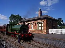 ![]() Leicester Humberstone Road station building in 1984 before being taken apart and rebuilt at Shenton | |||||