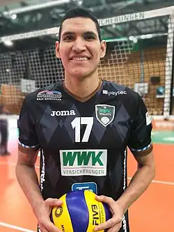 He plays as an outside hitter in the Colombian national team and for TSV Herrsching in the German Volleyball Bundesliga.
