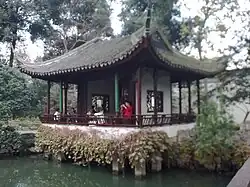 The main hall of the central garden, it is three bays wide and open on four sides. It has with a hipped-gable roofline with flying eves, and a portico on all four sides. It was rebuilt during the Qing dynasty, on the site of Wang Xiancheng's Country Hall House. The hall is sited to capture the scent of Lotus blossoms on Surging Wave Pond, as well as frame views of the islands. The hall is named after a verse by the Neo-confucianist poet Zhou Dunyi, " Though growing out of the filthy mub, she remains unstained. Though bathed in clear water, she bears no sign of seduction." This verse describing the lotus flower, also alludes to noble character, thus lotus fragrance coming off the Surging Wave Pond is ideologically tied to Neo-confucianism. |