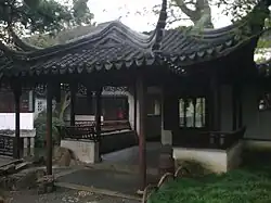 Also called Blooming Brush Hall, which is an allusion to a story by Li Bai about a red flower blooming from the tip of his brush that became a symbol of creativity. It is a three bay hall with a walled courtyard attached to the front. It is named for the magnolia trees in the courtyard and functioned as Wen Zhengming's studio. |