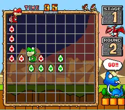 The objective of the game is to place eggs by walking on a 9x9 playing field. The player can eat the eggs by pressing the B button. In order to win, the player must have more eggs than the others; failing to do so will cause the player to lose the game.