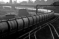 The railway corridor used is part of the Main North railway line. The Hunter Valley infrastructure is owned by the State Government owned RailCorp and managed by the Federal Government owned Australian Rail Track Corporation under a 60-year lease until 2064.[2][3][4] In November 1994, it was announced that the line would be opened up to other operators.[5] Prior to only FreightCorp and its predecessors operated trains. The other infrastructure associated with coal transport, such as load points, is privately owned, usually by a mine or a coal loader.