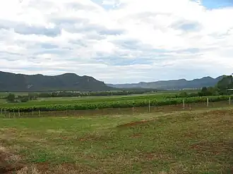 The majority of the Hunter Valley's most prestigious vineyards are located on the southern valley and foothills of the Brokenback Range (part of the Great Dividing Range). The topography of the Hunter includes mostly gently sloping hills with modest gradients. The one notable exception are the vineyards of Mount View just west of the town of Cessnock. The terrain of the Upper Hunter is noticeably flatter as the Goulburn River and other tributaries of the Hunter River dominate the area.[4] The greater river system of the Hunter, which includes the Goulburn and important tributaries such as Giants Creek, do provide needed irrigation for areas such as the Upper Hunter that can be prone to drought condition.[1][5]