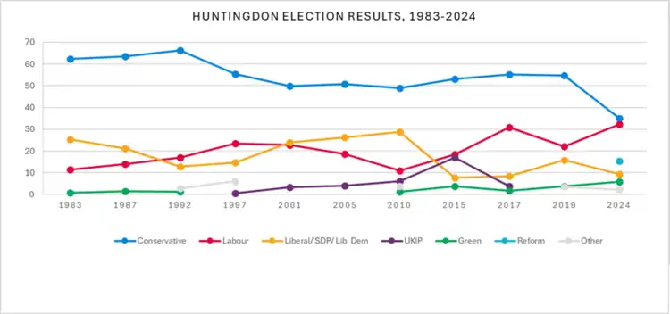 Before 2024, Huntingdon was considered a safe Conservative seat and was the seat of John Major, the Prime Minister from 1990 to 1997.