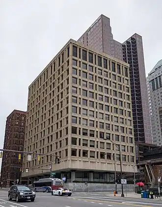 In 1985, the building was renovated and renamed as Huntington Plaza Building, due to the bank's trust department no longer being housed in the building. The renovations included sandblasting the exterior and creating park space around the building.[7] Before then, the space beside the building was used for drive-through banking services.[8]