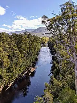 The Huon River (/ˈhjuːɒnˈrɪvə/ HYOO-on-RIV-ə, Mellukerdee/palawa kani: Taloonne)[2] is a perennial river in the southwest and southeast regions of Tasmania, Australia. At 174 kilometres (108 mi) long, the Huon River is the fifth-longest in the state, with its course flowing east through the fertile Huon Valley and emptying into the D'Entrecasteaux Channel, before flowing into the Tasman Sea.