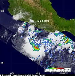 - ^ Michael Brennan (June 19, 2011). "Tropical Storm Beatriz Public Advisory Two". National Hurricane Center. National Oceanic and Atmospheric Administration. Retrieved October 15, 2011.