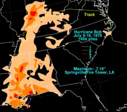 - ^ Roth, David M. "Hurricane Bob - July 9-16, 1979". Tropical Cyclone Point Maxima. Silver Springs, Maryland: United States National Oceanic and Atmospheric Administration's Weather Prediction Center. Retrieved December 3, 2013.