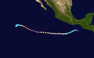 - ^ a b Hurricane Specialist Division (2010). "1949–2009 Eastern Pacific Hurricane Database". National Hurricane Center. Archived from the original on March 9, 2010. Retrieved June 25, 2010.