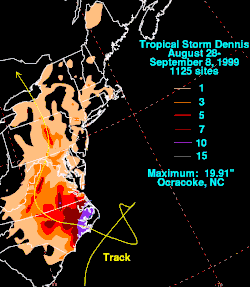 - ^ Jack L. Beven (September 4, 1999). Tropical Storm Dennis Discussion Number 43. National Hurricane Center (Report). Miami, Florida: National Oceanic and Atmospheric Administration. Retrieved December 20, 2013.