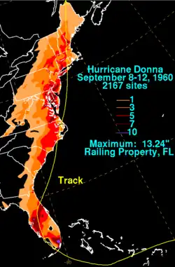 - ^ Tropical Storm "Donna" September 2-13, 1960 Preliminary Report (GIF) (Report). United States Weather Bureau. Archived from the original on September 21, 2013. Retrieved September 3, 2013.