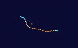 - ^ For consistency, Coordinated Universal Time (UTC) is used for all references of time as the cyclone existed in multiple time zones throughout its existence.