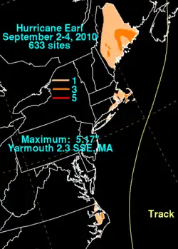 - ^ a b David M. Roth (2010). "Hurricane Earl – August 29-September 4, 2010". Hydrometeorological Prediction Center. Retrieved October 5, 2010.
