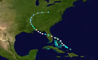 - ^ Williams, John M.; Duedall, Iver W. (2002). Florida Hurricanes and Tropical Storms. University of Florida Press. p. 52. ISBN 0813024943. Retrieved January 6, 2020.