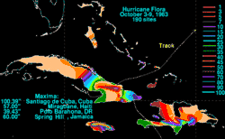 - ^ Roth, David M; Hydrometeorological Prediction Center (2008). "Hurricane Flora (1963) rainfall graphic". Tropical Cyclone Point Maxima. United States National Oceanic and Atmospheric Administration's National Weather Service. Retrieved June 9, 2012.