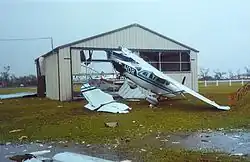 Damage was heaviest in the northern offshore islands and in the northern portion of the mainland.[44] On the offshore islands, downed trees and power lines blocked most roads.[42] In Caye Caulker and San Pedro, Keith damaged the roofs of about 90% of houses and damaged or destroyed 676 houses,[28] leaving 3,279 people homeless.[42] About 50% of the houses in Caye Caulker were destroyed,[35][45] In San Pedro, about 30% of houses,[35] or at least 50, were wrecked.[45] On Ambergris Caye, four airplanes were destroyed.[42] At Turneffe Atoll, about 35% of the landmass was affected, with many trees in that section uprooted and numerous tree branches snapped.[46]