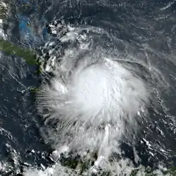 ![]() Hurricane Laura near peak intensity while approaching Louisiana late on August 26 | |