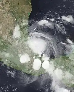 Overall, the hurricane affected 123,320 people across Veracruz and Hidalgo, prompting the declaration of a state of emergency in 112 municipalities.[10] The declaration allowed the usage of emergency resources for the affected people.[18] There were a total of six deaths in the country, five of which in Puebla.[10] By about three days after the storm, all schools were reopened.[16] The Mexican government distributed food, water, and construction materials for the areas most affected in Veracruz.[17] Following the storm, about 500 power workers were dispatched in Veracruz to restore electricity in the affected areas.[15]