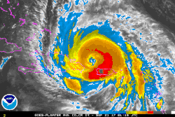 ![]() Maria at peak intensity while southeast of the U.S. Virgin Islands early on September 20 | |