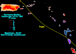 Damage was moderate in the south, due to the massive amount of rainfall. Marilyn was one of the three hurricanes that affected the region in 1995, after Iris and Luis; the total estimated damage was near 500 million francs.