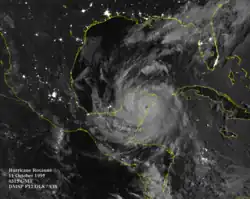 Roxanne was the first October hurricane that formed and reached Category 3 intensity on the Saffir-Simpson Hurricane Scale (SSHS) in the western Caribbean Sea since Hurricane Hattie in October 1961.[1] Due to its slow and erratic movement, Roxanne dropped heavy rainfall in many areas of southern Mexico, and some areas reported over 25 inches (640 mm) of precipitation. Heavy rainfall, in turn, led to extensive flooding, which destroyed crop, washed out roads, and damaged at least 40,000 homes. In addition, significant coastal flooding also occurred, as storm surge for nearly a week caused water to travel inland for hundreds of yards. High winds also occurred over the Yucatan Peninsula, with one station reporting hurricane-force winds on October 11. Overall, it is estimated that Roxanne caused $1.5 billion (1995 USD) in damage, although not all damage could be distinguished from Hurricane Opal. In addition, 29 fatalities were reported.