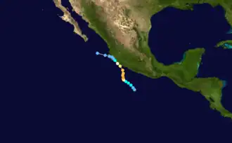 Hurricane Virgil was a late season hurricane of the 1992 Pacific hurricane season that struck southwestern Mexico in October 1992. Forming from a tropical wave that left Africa on September 13, it slowly developed into a tropical depression. It soon strengthened into Tropical Storm Virgil, and rapidly intensified into a hurricane on October 2. Continuing to intensify, the hurricane attained major hurricane strength, and peaked as a Category 4 hurricane off the coast of Mexico. Shortly before landfall, it weakened to a Category 2 hurricane, and it dissipated on October 5. Damage was generally minimal, though one person was reported missing.