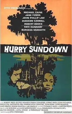 Hurry Sundown is a 1967 American drama film produced and directed by Otto Preminger, and starring Jane Fonda and Michael Caine.[3] The screenplay by Horton Foote and Thomas C. Ryan is based on the 1965 novel of the same title by K.B. Gilden, a pseudonym for the married couple Katya and Bert Gilden. It marked Faye Dunaway's film debut. The film is considered a Southern Gothic work.[4]