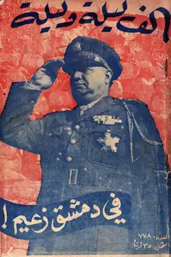 Husni al-Za'im (Arabic: حسني الزعيم Ḥusnī az-Za’īm; 11 May 1897 – 14 August 1949) was a Syrian military officer who served as head of state of Syria in 1949.[1] He had been an officer in the Ottoman Army.[2] After France instituted its colonial mandate over Syria after the First World War, he became an officer in the French Army. After Syria's independence in 1946 he was made Chief of Staff, and was ordered to lead the Syrian Army into war with the Israeli Army in the 1948 Arab-Israeli War. The defeat of the Arab league forces in that war shook Syria and undermined confidence in the country's chaotic parliamentary democracy, allowing him to seize power in 1949. However, his reign as head of state was brief, he was tried and executed in August 1949 by his former coup co-conspirators. Al-Za'im infamously executed Lebanese intellectual Antoun Saadeh in July 1949.