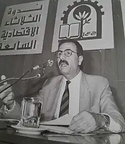 ![]() Al-Sharaa speaking at the Tuesday Economic Symposium in Damascus in 1992 | |